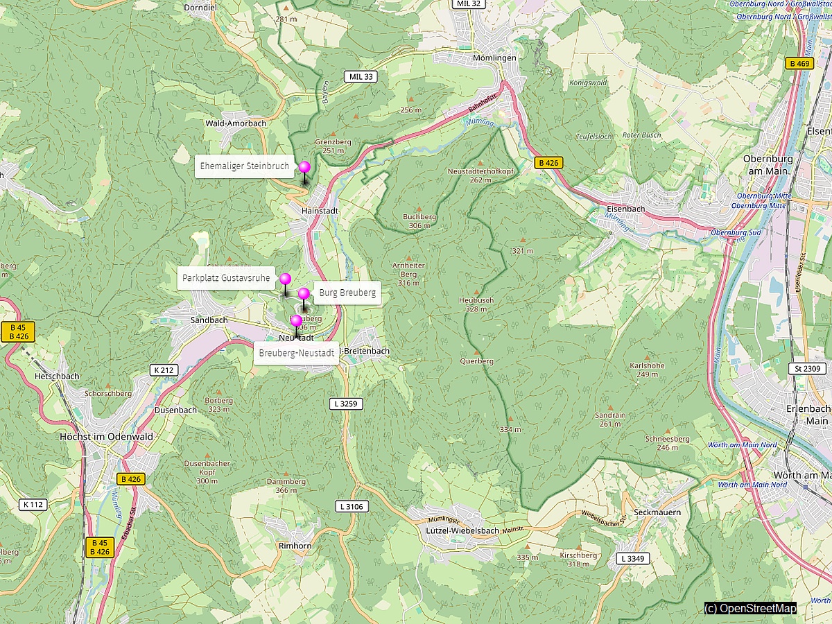 - Burg-Breuberg-Weg: 2 km Rundweg zur Burg Breuberg
