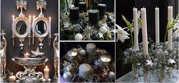 Gold, Silber und winterliches Weiß reflektieren das Licht der Kerzen und lassen jede Weihnachtsdekoration zum Blickfang werden. Edle Weihnachtsaccessoires in Form von Engel, Zweigen und Blüten verleihen zudem Eleganz