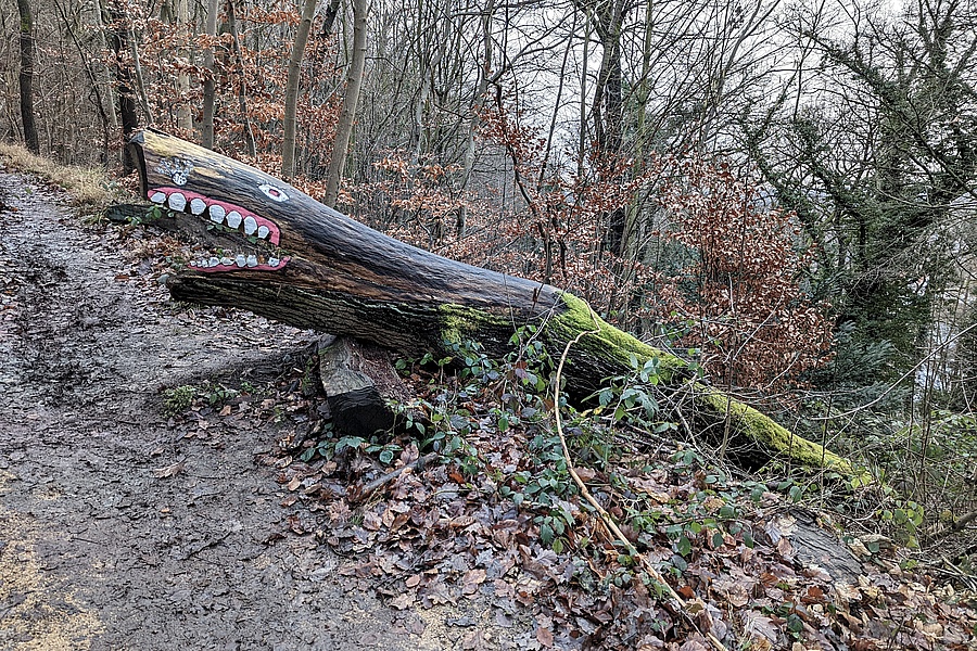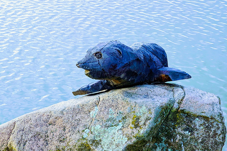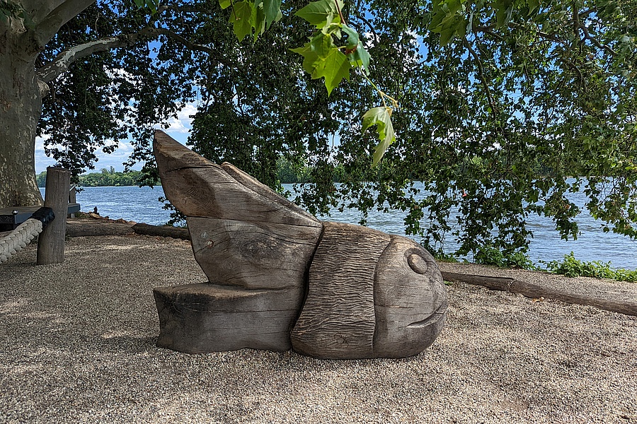 Holzskulptur am Rheinufer in Eltville