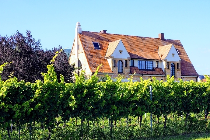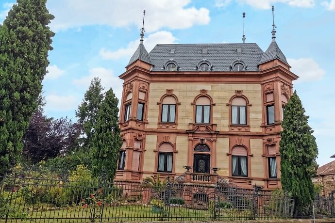 Dank der E-Bikes haben wir noch genug Energie für einen Abstecher nach Wachenheim, ein beschauliches Örtchen, mit Traditionsunternehmen, die weltweit bekannt sind. Da wäre zum einen die Sektkellerei Schloss Wachenheim, die seit ihrer Gründung 1888 zu den ältesten und traditionsreichen Sekthäusern in Deutschland zählt und sich in einem wunderschönen und stilvollen Palais befindet. (Führungen können gebucht werden), die Metzgerei Hambel, die ihre Produkte in die ganze Welt liefert und das traditionsreiche Weingut Dr. Bürklin-Wolf, das schon allein wegen der traumhaften Gartenanlage ein Besuch wert ist (dazu später mehr).