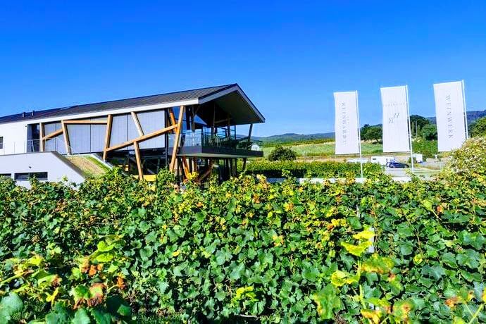 Das Weinwerk eine lichtdurchflutete Vinothek inmitten der Natur mit Rund-um-Panoramablick