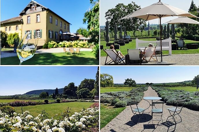 Der wunderschöne englische Garten, der an die Vinothek Bürklin Wolf anschließt, lädt zum Verweilen und Flanieren ein.