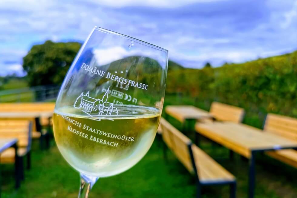 Am Ende des Rundwegs kann man in der Vinothek "Hessischer Rebmuttergarten“ Weine und Kleinigkeiten genießen. Man sitzt wunderschön, umgeben von Weinreben und falls das Wetter mal nicht so passt, bietet die Vinothek auch innen Verkostungsmöglichkeiten. Erwähnenswert ist, dass die Lagen rundherum zur Domäne Bergstrasse von Kloster Eberbach gehören. Was das Rheingauer Kloster mit der Bergstrasse zu tun hat, haben wir nachgelesen: