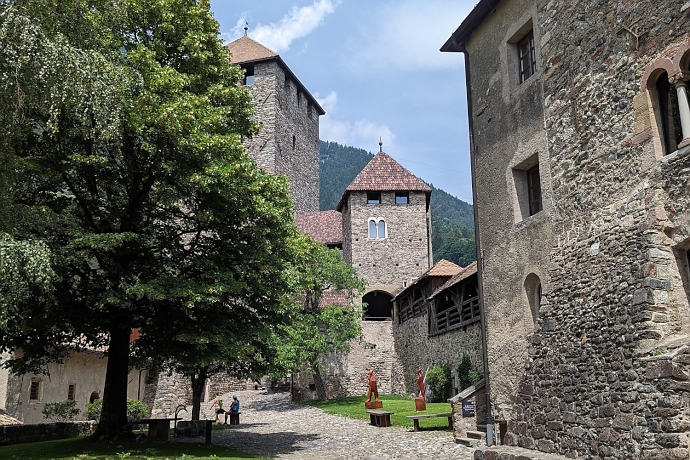 Schloss Tirol ist ein malerisch gelegenes Schloss aus dem Mittelalter, das einst als Stammburg der Grafen von Tirol diente und der Region ihren Namen gab. Es thront nicht weit von Meran über dem Ort Dorf Tirol. Da uns die Gästekarte freien Eintritt ermöglichte, haben wir es besucht. Vom Ortskern führt ein schöner Spazierweg zum Schloss. Unterwegs laden idyllische Einkehrmöglichkeiten ein, zu verweilen und die Umgebung auf sich wirken zu lassen. Angekommen am Schloss beeindrucken vor allem die imposanten Ringmauern, die das Schloss umgeben und den Innenhof schützen. Man hat das Gefühl in eine längst vergangene Zeit zurückversetzt zu werden. Im Inneren befindet sich das interaktive Südtiroler Landesmuseum für Kultur- und Landesgeschichte, das uns auf eine Zeitreise durch die Geschichte der Region mitnimmt.